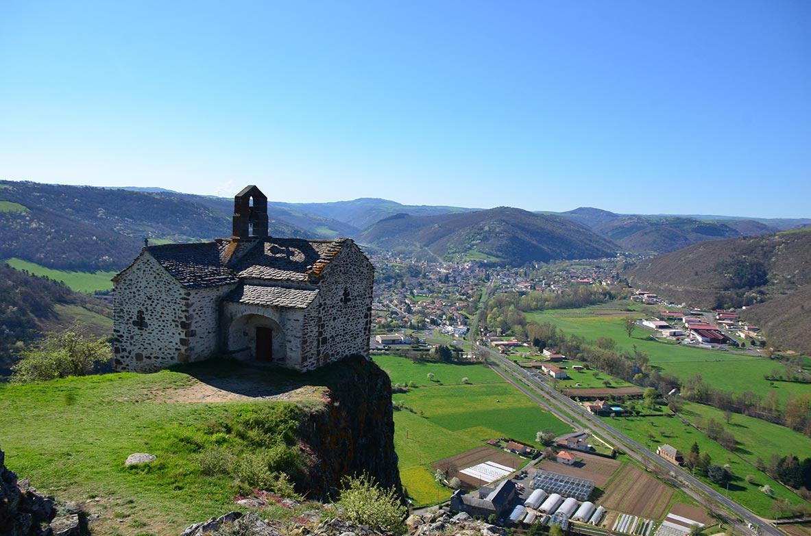 Qui n’a pas un jour admiré cette chapelle toute simple, perchée au bord d’un vertigineux précipice et sur laquelle un majestueux aperçu est offert depuis l’autoroute A75 ? A l’image du site de Chastel-Marlhac, le plateau basaltique de Chalet et la chapelle Sainte-Madeleine sont également un haut lieu d’histoire : histoires saintes enseignées aux enfants de la paroisse ou histoires grivoises lorsqu’elles sont contées dans les auberges, histoires de culte solaire, de grotte et de fontaine miraculeuse au pied des orgues, ou tout simplement l’histoire de la famille Mercoeur qui au XIIème siècle, fit bâtir en ce lieu un château-fort dont il ne reste aujourd’hui que la chapelle comme seul vestige.